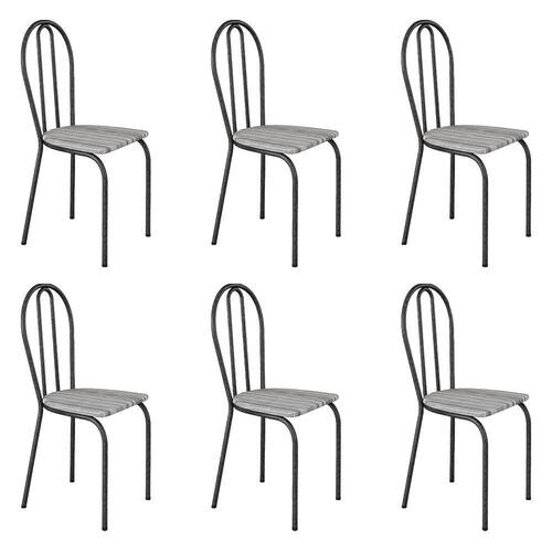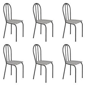 Kit 6 Cadeiras de Cozinha Texas Estampado Linho Pés de Ferro Cromo Preto - Pallazio