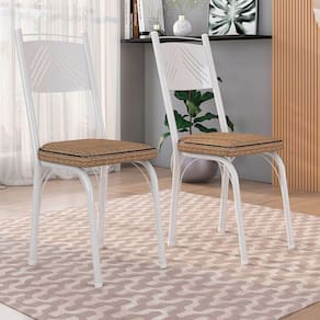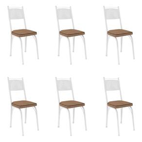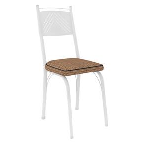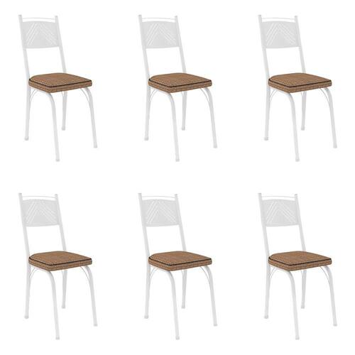 Kit 6 Cadeiras de Cozinha Virginia Estampado Rattan Bege Pés de Ferro Branco - Pallazio