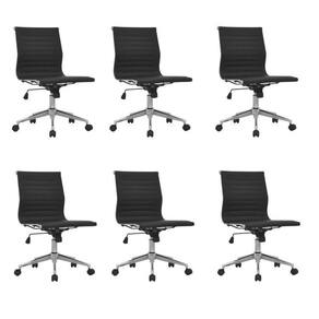 Conjunto de 6 Cadeiras para escritório, giratória com ajuste de altura com pistão á gás e encosto com sistema "relax". Estrutura em aço cromado com assento e encosto revestidos em tecido PU, sem braços. Base cromada em formato estrela com rodízios. Produto Montado: Sim Altura do Conjunto: 86 cm Ambiente: null Ambiente Principal: Escritório Apoio para Braços Estofado: Não codigo_ean: 7909903328705 Complexidade da Montagem: Baixa: pode ser montado por uma pessoa sozinha Cor: Preto Cor da Base: Cromado Cor do Produto: Preto Informação Complementar: 1x Kit 2 Cadeiras de Escritório Office Sevilha Baixa Preto Largura: 59 Altura: 86 Peso: 9.77 Profundidade: 59 Necessita Montagem: Sim