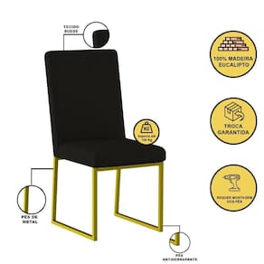 Fabricante: BALAQUI DECOR | Precisa de baterias ou pilhas (areBatteriesRequired): Não | Regulamentações aplicáveis a produtos perigosos (supplierDeclaredDGHZRegulation): Não aplicável | Largura: 44 | Altura: 57 | Profundidade: 75 | Tipo de Produto: Cadeira | Peso do Item (itemWeight): 14 | Cor dos Pés: Dourado | Estrutura: Madeira | Tipo de Tecido: Suede | Marca: BALAQUI DECOR | Quantidade de Caixas por Embalagem: 2 | Volume: 1 Cor: Preto