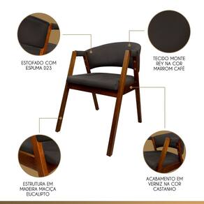 A Cadeira Poltrona Ravena é a escolha ideal para quem busca conforto e estilo para sua casa. Com estrutura em madeira eucalipto ecologicamente correta, esta poltrona é resistente e durável, para te acompanhar por muitos anos. O acabamento em verniz oferece um visual clássico e elegante, que combina com diversos estilos de decoração. O assento e encosto estofados com espuma D23 garantem um conforto inigualável, perfeito para relaxar após um longo dia. O tecido Monte Rey é macio e aconchegante, e complementa o design com um toque de sofisticação. Funcional, elegante e confortável, a Cadeira Poltrona Ravena é a escolha perfeita para quem busca um móvel de qualidade para decorar sua sala de estar, quarto ou qualquer outro ambiente da sua casa. CARACTERÍSTICAS TÉCNICAS DA CADEIRA RAVENA: - Estrutura: Madeira Eucalipto Ecologicamente Correta; - Acabamento: Verniz na Cor Castanho; - Estofado: Assento e Encosto com Espuma D23; - Tecido: Monte Rey na Cor Marrom Café. *CADEIRAS ENTREGUE MONTADAS. *KIT COMPOSTO POR 6 CADEIRAS RAVENA. DIMENSÕES DA CADEIRA RAVENA: Altura: 86 Cm Altura até o Braço: 70 Cm Altura Assento: 47 Cm Largura: 55 Cm Profundidade: 60 Cm Peso: 5 Kg INFORMAÇÕES ADICIONAIS: ATENÇÃO: Móvel produzido em madeira maciça natural podendo ocorrer mudança no tom da madeira conforme o produto;*Conferir se o produto está de acordo com o que comprou, produto danificado não será aceito troca;**As imagens ambientadas são meramente ilustrativas e podem apresentar itens que não compõe o produto. As cores do produto podem variar de acordo com o monitor, a iluminação do ambiente ou sua percepção visual;***Limpeza deve ser feita com pano macio e seco ou levemente umedecido com água e sabão neutro. Não devem ser utilizados produtos abrasivos;Garantia para defeitos de fabricação conforme Código de Defesa do Consumidor. Marca: CCS Interiores