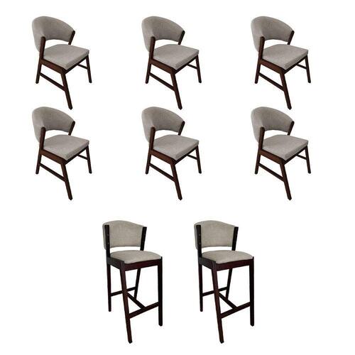 AS IMAGENS SÃO MERAMENTE ILUSTRATIVAS E PODEM SOFRER VARIAÇÕES DE COR E PEQUENOS DETALHES DE ACORDO COM O SEU MONITOR, ILUMINAÇÃO DO AMBIENTE E ATÉ MESMO A SUA PERCEPÇÃO VISUAL.Kit 6 Cadeiras de Jantar Debora com 2 Banquetas Ana Madeira MaciÃa Castanho Premium Linho Bege