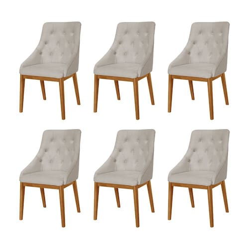 Kit 6 Cadeiras De Jantar Elisa Linho Madeira Maciça Cor: Bege Kit 6 Cadeiras de Jantar Elisa Estofadas Linho Madeira Maciça Castanho A Cadeira Estofada possui formato anatômico e vai deixar seu ambiente muito mais bonito e sofisticado. Mantendo todo conforto que o móvel precisa ainda conta com enorme elegância. Tipo: Cadeira Modelo: Estofada Cor do Assento: Bege Cor da Base: Castanho Tecido: Linho Medidas: Altura: 90cm Largura: 55cm Comprimento: 58cm ATENÇÃO OBS: BASE DE MADEIRA PODE APRESENTAR DETALHES (RANHURAS) DA PRÓPRIA MADEIRA, O QUE A TORNA ÚNICA E , SENDO UMA PEÇA E NÃO UM DE FABRICAÇÃO! IMAGENS MERAMENTE ILUSTRATIVAS REALIZADO EDIÇÃO, PODENDO HAVER UMA PEQUENA VARIAÇÃO DE COR DEPENDENDO DE CADA TELA OU MONITOR. Marca: Home Nobre