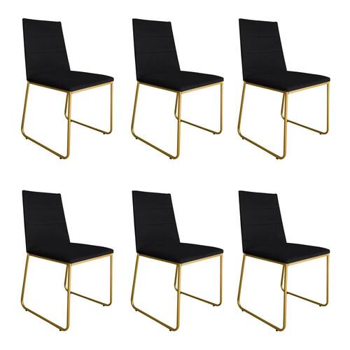 Kit 6 Cadeiras de Jantar Estofada Lille Base Gold Veludo Preto chegou essa incrível novidade para você, que deseja inovar e decorar o seu espaço com muito Estilo. A Cadeira Lille possui uma matéria-prima de ótima qualidade, garantindo conforto e durabilidade do produto. Possui variações de cores tanto na base e no assento, oferecendo várias opções de escolha para sua decoração.