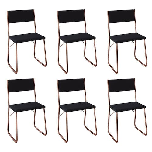 Kit 6 Cadeiras De Jantar Estofadas Angra - Cobre E Preta - Cor: Preto