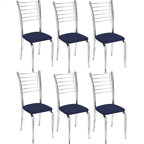 Kit 6 Cadeiras De Jantar Lara Cromada Para Cozinha Assento Sintético Azul Marinho - Aurora Line Cadeira Para Cozinha Lara - Aurora Line A Cadeira Lara é a opção ideal para sua casa. Se você está procurando por uma cadeira de jantar que seja perfeita para a sua cozinha, com estilo industrial, resistente e confortável, a Cadeira Lara é a escolha certa. Seja para casas, apartamentos ou áreas gourmet, essa cadeira vai se encaixar perfeitamente no seu espaço. Com um design moderno e elegante, a Cadeira Lara combina perfeitamente com diferentes estilos de decoração. Se você gosta de um ambiente mais industrial, essa cadeira vai trazer um toque de personalidade para a sua casa. Além disso, ela também é versátil o suficiente para se adaptar a outros estilos, como o contemporâneo ou o rústico.Além do design, a Cadeira Lara também se destaca pela sua resistência. Feita com materiais de alta qualidade, ela é capaz de suportar o uso diário sem perder a sua durabilidade. Se você tem uma família grande ou adora receber amigos para jantar, essa cadeira é perfeita para você. Ela vai garantir conforto e segurança para todos.Outro ponto importante da Cadeira Lara é o seu conforto. Com um assento acolchoado e encosto ergonômico, essa cadeira proporciona uma experiência agradável durante as refeições. Você vai poder desfrutar de momentos de descontração e prazer à mesa, seja para um jantar em família ou um encontro com amigos.