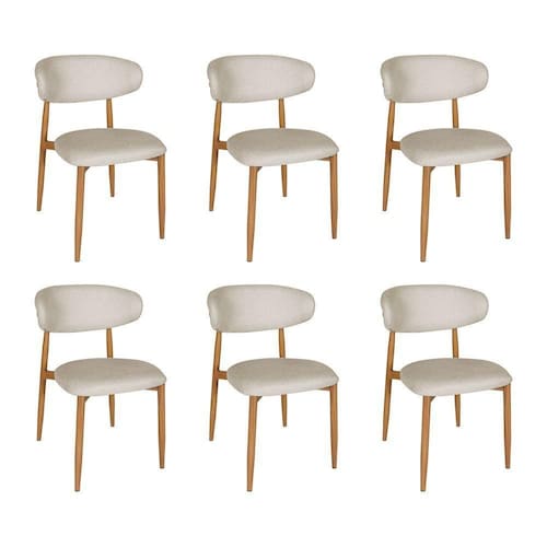 AS IMAGENS SÃO MERAMENTE ILUSTRATIVAS E PODEM SOFRER VARIAÇÕES DE COR E PEQUENOS DETALHES DE ACORDO COM O SEU MONITOR, ILUMINAÇÃO DO AMBIENTE E ATÉ MESMO A SUA PERCEPÇÃO 6 Cadeiras de Jantar Lucy Estrutura AÃo Carbono Laminado Natural com Estofado Linho Cru