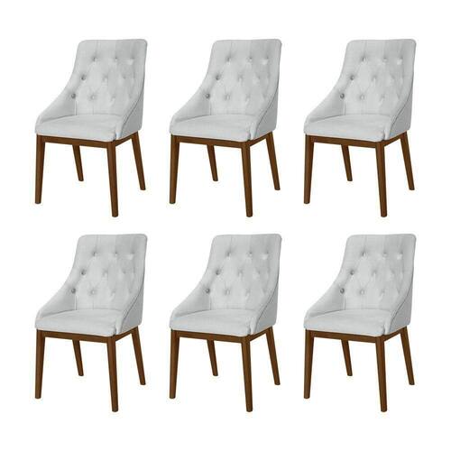 Kit 6 Cadeiras De Jantar Luxo Estofada Elisa Anatômica Capitonê Linho Cinza Base Madeira Maciça Imbu