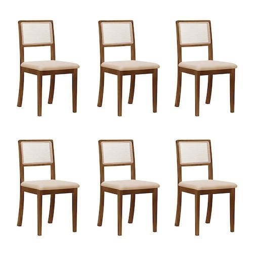 Kit 6 Cadeiras De Jantar Luxo Madeira Maciça Imbuia Encosto Telinha Palha Estofada Veludo Bege Rubi