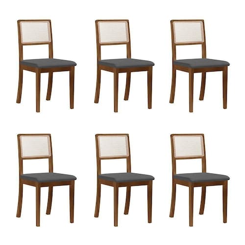 Kit 6 Cadeiras De Jantar Luxo Madeira Maciça Imbuia Encosto Telinha Rubi Palha Estofada Linho Cinza A Cadeira Estofada possui formato anatômico e vai deixar seu ambiente muito mais bonito e sofisticado. Mantendo todo conforto que o móvel precisa ainda conta com enorme elegância. Tipo: Cadeira Modelo: Estofada Cor do Assento: Cinza Cor da Base: Imbuia Tecido: Linho Medidas: Altura: 92cm Largura: 46cm Comnto: 56cm ATENÇÃO OBS: BASE DE MADEIRA PODE APRESENTAR DETALHES (RANHURAS) DA PRÓPRIA MADEIRA, O QUE A TORNA ÚNICA E NATURAL, SENDO UMA PEÇA E NÃO UM DEFEITO DE FABRICAÇÃO! IMAGENS MERAMENTE ILUSTRATIVAS REALIZADO EDIÇÃO, PODENDO HAVER UMA PEQUENA VARIAÇÃO DE COR DEPENDENDO DE CADA TELA OU MONITOR.