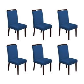 AS IMAGENS SÃO MERAMENTE ILUSTRATIVAS E PODEM SOFRER VARIAÇÕES DE COR E PEQUENOS DETALHES DE ACORDO COM O SEU MONITOR, ILUMINAÇÃO DO AMBIENTE E ATÉ MESMO A SUA PERCEPÇÃO VISUAL.Kit 6 Cadeiras de Jantar Madeira MaciÃa Castanho Premium HeloÃsa Veludo Azul