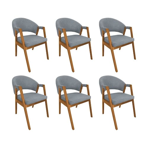 Kit 6 Cadeiras de Jantar Madeira Maciça Cerejeira Premium Helen Linho Cinza