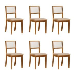 Kit 6 Cadeiras De Jantar Madeira Maciça Mel Encosto Telinha Palha Estofada Linho Bege Rubi A Cadeira Estofada possui formato anatômico e vai deixar seu ambiente muito mais bonito e sofisticado. Mantendo todo conforto que o móvel precisa ainda conta com enorme elegância. Tipo: Cadeira Modelo: Estofada Cor do Assento: Bege Cor da Base: Castanho Tecido: Linho Medidas: Altura: 92cm Largura: 46cm Comnto: 56cm ATENÇÃO OBS: BASE DE MADEIRA PODE APRESENTAR DETALHES (RANHURAS) DA PRÓPRIA MADEIRA, O QUE A TORNA ÚNICA E NATURAL, SENDO UMA PEÇA E NÃO UM DEFEITO DE FABRICAÇÃO! IMAGENS MERAMENTE ILUSTRATIVAS REALIZADO EDIÇÃO, PODENDO HAVER UMA PEQUENA VARIAÇÃO DE COR DEPENDENDO DE CADA TELA OU MONITOR.
