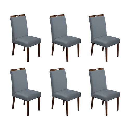Kit 6 Cadeiras De Jantar Madeira Maciça Natural Premium Heloísa Veludo Cinza