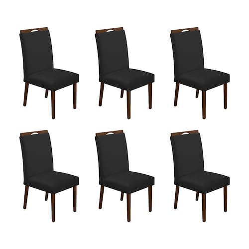 Kit 6 Cadeiras De Jantar Madeira Maciça Natural Premium Heloísa Veludo Preto - Preto