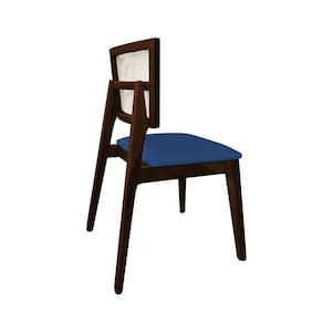 Tipo: Cadeira Modelo: Manuela Cor Assento: Azul Tecido Assento: Veludo Cor Base: Castanho Base em Madeira Eucalipto