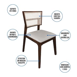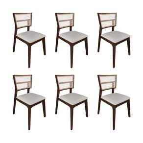 KIT 6 CADEIRAS DE JANTAR MANUELA EM TELA ASSENTO VELUDO BEGE BASE EM MADEIRA MACIÇA - NATURAL