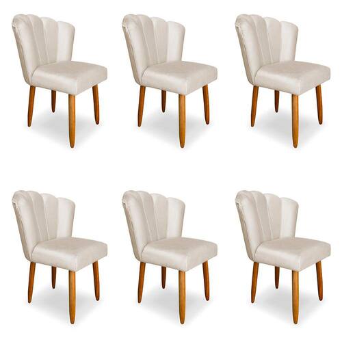 Kit 6 Cadeiras de Jantar Pétala Estofada Pés Palito Veludo Bege - Montanaris Decor
