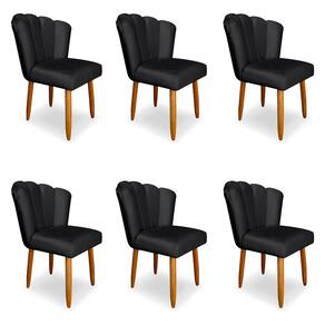 Kit 6 Cadeiras de Jantar Pétala Estofada Pés Palito Veludo Cinza Escuro - Montanaris Decor
