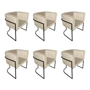 AS IMAGENS SÃO MERAMENTE ILUSTRATIVAS E PODEM SOFRER VARIAÇÕES DE COR E PEQUENOS DETALHES DE ACORDO COM O SEU MONITOR, ILUMINAÇÃO DO AMBIENTE E ATÉ MESMO A SUA PERCEPÇÃO VISUAL.Kit 6 Cadeiras De Jantar Premium Base De Ferro Preta Veludo Bege
