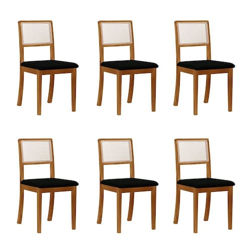Kit 6 Cadeiras De Jantar Estofada Veludo Rubi Madeira Maciça Cor: Preto Kit 6 Cadeiras de Jantar Palha Estofadas Veludo Tela Sextavada Rubi Madeira Maciça MelA Cadeira Estofada possui formato anatômico e vai deixar seu ambiente muito mais bonito e sofisticado. Mantendo todo conforto que o móvel precisa ainda conta com enorme elegância. Tipo: Cadeira Modelo: Estofada Cor do Assento: Preto Cor da Base: Castanho Tecido: Veludo Medidas: Altura: 92cm Largura: 46cm Comprimento: 56cm ATENÇÃO OBS: BASE DE MADEIRA PODE APRESENTAR DETALHES (RANHURAS) DA PRÓPRIA MADEIRA, O QUE A TORNA ÚNICA E , SENDO UMA PEÇA E NÃO UM DE FABRICAÇÃO! IMAGENS MERAMENTE ILUSTRATIVAS REALIZADO EDIÇÃO, PODENDO HAVER UMA PEQUENA VARIAÇÃO DE COR DEPENDENDO DE CADA TELA OU MONITOR. Marca: Home Nobre