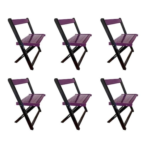 AS IMAGENS SÃO MERAMENTE ILUSTRATIVAS E PODEM SOFRER VARIAÇÕES DE COR E PEQUENOS DETALHES DE ACORDO COM O SEU MONITOR, ILUMINAÇÃO DO AMBIENTE E ATÉ MESMO A SUA PERCEPÇÃO VISUAL.Kit 6 Cadeiras de Madeira DobrÃvel Roxo
