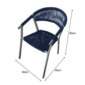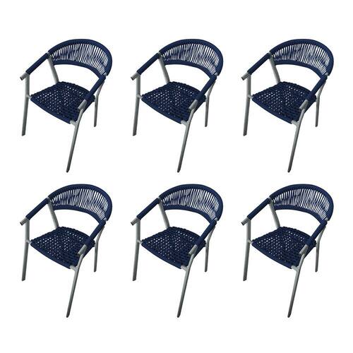 Kit 6 Cadeiras Decorativa Joana em Corda Náutica e Base em Alumínio Cinza/ Azul Marinho - Azul Royal