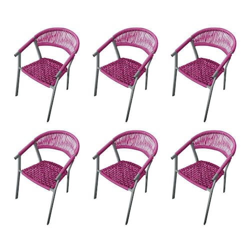 Kit 6 Cadeiras Decorativa Joana Em Corda Náutica E Base Em Alumínio Cinza/ Rosa - Cor: Rosa