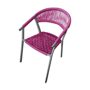 Kit 6 Cadeiras Decorativa Joana Em Corda Náutica E Base Em Alumínio Cinza- Rosa - Cor: Rosa