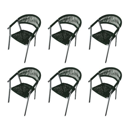 Kit 6 Cadeiras Decorativa Joana Em Corda Náutica E Base Em Alumínio Cinza/ Verde Musgo - Cor: Verde