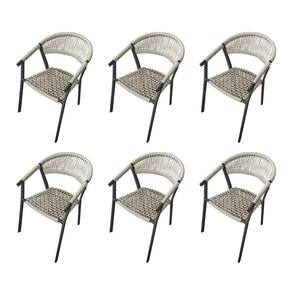 Kit 6 Cadeiras Decorativa Joana Em Corda Náutica E Base Em Alumínio Preta- Areia - Cor: Bege