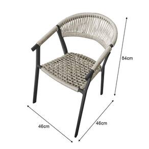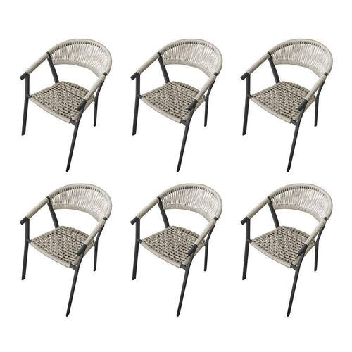 Kit 6 Cadeiras Decorativa Joana Em Corda Náutica E Base Em Alumínio Preta/ Areia - Cor: Bege