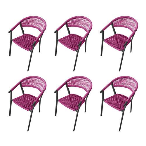 Kit 6 Cadeiras Decorativa Joana em Corda Náutica e Base em Alumínio Preta/ Rosa
