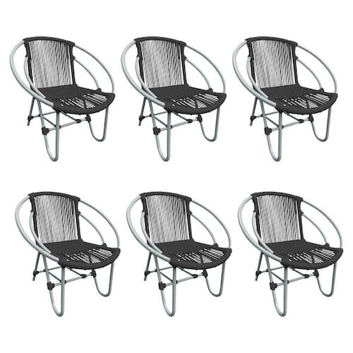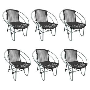 Kit 6 Cadeiras Decorativa Julia Em Corda Náutica E Base Em Alumínio Cinza-preto - Cor: Cinza