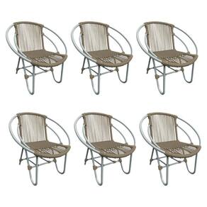 Kit 6 Cadeiras Decorativa Julia Em Corda Náutica E Base Em Alumínio Cinza/ Rami - Cor: Bege