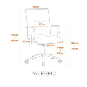 A cadeira Palermo é totalmente revestida em couro ecológico, incluindo seus braços, para maior conforto de quem estiver usando.