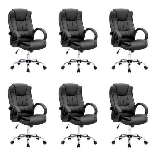 A cadeira Melbourne é perfeita para salas presidenciais, o conforto proporcionado pelo encosto e braços revestidos em PU, unidos ao sistema relax para acompanhar o balanço do corpo, proporciona conforto com seu design luxuoso! Altura do Conjunto: 123 cm Ambiente: null Ambiente Principal: Escritório Cor: Preto Cor do Produto: Preto Informação Complementar: 6x Cadeira Escritório Giratória Presidente Melbourne Fratini Preto Largura: 64 cm Altura: 123 cm Peso: 15,5 kg Profundidade: 69 cm Necessita Montagem: Sim