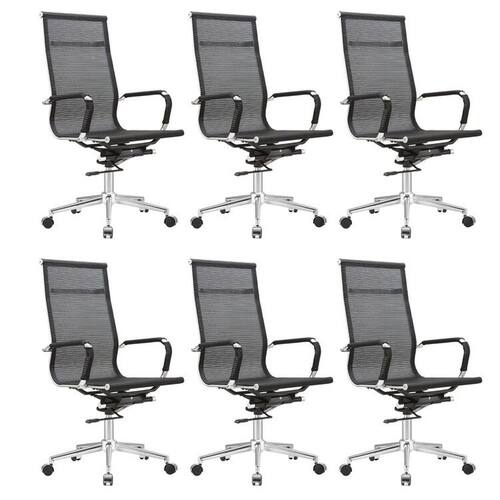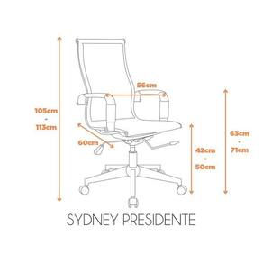 A cadeira Sydney Presidente é toda em tela com aço cromado. A tela garante resistência e conforto para quem estiver usando, além de também possuir seus braços revestidos, para que a pele não entre em contato com o metal direto. Ela possui um assento alongado, o que a torna perfeita para salas de diretoria e mesas de reunião, além de possuir o sistema relax para que seja melhor para seus usuários, travando na vertical, ou balançando de acordo com o movimento do corpo. Altura do Conjunto: 113 cm Ambiente: null Ambiente Principal: Escritório Cor: Preto Informação Complementar: 6x Cadeira Escritório Giratória Sidney Presidente Preto Largura: 56 cm Altura: 113 cm Peso: 9,47 kg Profundidade: 60 cm Necessita Montagem: Sim