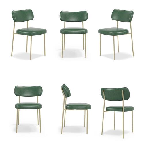 Kit 6 Cadeiras Escritório Stela Champanhe Couríssimo Verde - Vallisa Decor