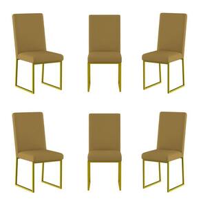 Você receberá três volumes, ou seja, apenas Seis Cadeira Estofada para Mesa de Jantar com Base Industrial Dourado.