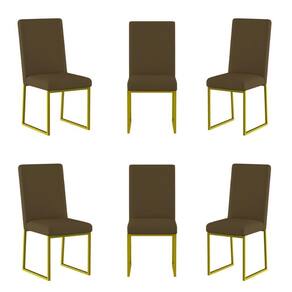 Você receberá três volumes, ou seja, apenas Seis Cadeira Estofada para Mesa de Jantar com Base Industrial Dourado.