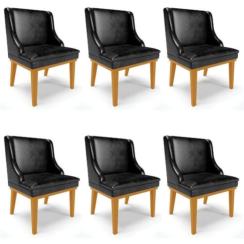 A Sala de Jantar combina com elegância e sofisticação, por isso, apresentamos o Kit 6 Cadeiras Estofadas Base Fixa de Madeira Castanho Lia Sintético Premium Preto, da Ibiza, confira os detalhes!