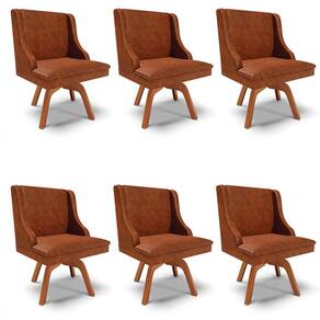 Para criar um ambiente lindo, aconchegante e sofisticado o Kit 6 Cadeiras Estofadas Base Giratória de Madeira Lia Sintético Premium Nozes, da Ibiza, é perfeito! Confira!