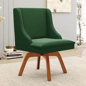 A Cadeira Estofada Lia possui design elegante e é ideal para quem busca aconchego e sofisticação na hora das refeições. A Base Giratória de Madeira é resistente e permite que se movimente com facilidade e ainda suporta até 120kg! Além disso, a Cadeira Estofada é produzida com Madeira Eucalipto de reflorestamento, ecologicamente correta e o estofado é composto em espuma macia D-23 e revestido em Veludo, tecido clássico, elegante, macio, agradável ao toque, além de resistente e durável é versátil e combina com vários estilos de decoração!