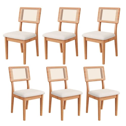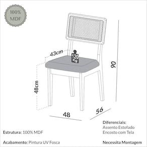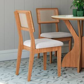 Moderna e ergonômica, a cadeira com assento estofado é fabricada 100% em MDF, garantindo durabilidade superior. Combinando design contemporâneo e conforto, sua estrutura em MDF proporciona um acabamento de alta qualidade. Feita com matérias-primas de excelência, esta cadeira é um acessório confortável, bonito e durável para a sua sala de jantar. CARACTERÍSTICAS TÉCNICAS: - Produzido em MDF de 15, 18 e 25 mm - Acabamento em Pintura UV na cor Freijó - Assento com Espuma D28 - Encosto com Tela Palha Sintética - Tecido em 5% Poliéster e 95% Algodão na cor Bege - Suporta até 120 Kg *Kit Comporto por SEIS Cadeiras DIMENSÕES: Altura: 90 cm Altura até o Assento: 48 cm Largura: 48 cm Profundidade Total: 56 cm Profundidade do Assento: 43 cm Peso: 7 kg INFORMAÇÕES ADICIONAIS: - CADEIRAS IRÃO DESMONTADA EM CAIXAS, ACOMPANHADO DE TODAS AS PEÇAS, FERRAGENS E MANUAIS PARA MONTAGEM. - ATENÇÃO: Não trabalhamos e não nos responsabilizamos pela montagem do móvel. Antes da montagem conferir se o produto está de acordo com o que comprou, produto montado e danificado pela montagem não será aceito troca. Montagem e instalação por conta do comprador. - As imagens ambientadas são meramente ilustrativas e podem apresentar itens que não compõe o produto. As cores do produto podem variar de acordo com o monitor, a iluminação do ambiente ou sua percepção visual. - Limpeza: Deve ser feita com pano macio e seco ou levemente umedecido com água e sabão neutro. Não devem ser utilizados abrasivos como palha de aço e objetos cortantes. -Garantia para defeitos de fabricação conforme Código de Defesa do Consumidor.
