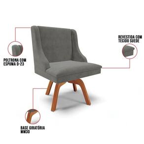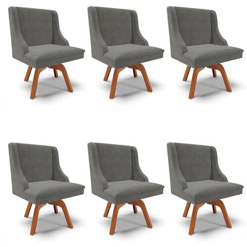 Kit 6 Cadeiras Estofadas Giratória para Sala de Jantar Lia Suede Grafite - Ibiza