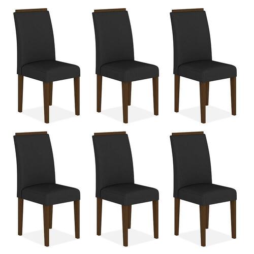 Detalhes Técnicos das Cadeiras - Assento e Encosto Tapeçados, Estofados e Fixos - Pintura UV Texturizada e P.U - Medida: Altura: 100cm x Largura: 44cm x Profundidade: 50cm - Estrutura: MDF 25mm e 18mm - Assento: D16 - Encosto: D14 - Tonalidade: Imbuia/Suede Preto - Peso Suportado da Cadeira: 90kg - Facilidade da Montagem: Média