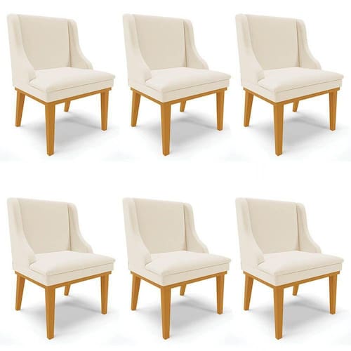Mais que do que um simples móvel, a cadeira estofada é um artigo decorativo tão importante quanto a mesa de jantar, pois, ela agrega beleza na decoração e chama a atenção de quem vê, por isso, apresentamos o Kit 6 Cadeiras Lia que foi projetado com um design exclusivo que facilita combiná-las com os outros móveis, deixando sua sala de jantar ainda mais bonita. As cadeiras são produzidas com materiais de alta qualidade, para que não se preocupe em desfrutar de bons momentos durante as refeições com sua família e amigos. Essa cadeira de jantar possui estrutura em Madeira Eucalipto de reflorestamento, ecologicamente correta e a base fixa de madeira suporta até 120 kg, sem impacto. A parte estofada é composta por espuma macia com densidade D-23 e o revestimento é em Linho, que para alguns é a representatividade da nobreza! Esse tecido é versátil, durável, macio, conta com propriedades térmicas, antialérgicas e é de fácil limpeza.