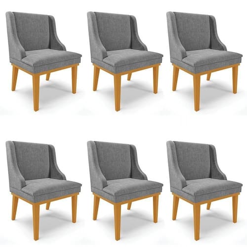 Mais que do que um simples móvel, a cadeira estofada é um artigo decorativo tão importante quanto a mesa de jantar, pois, ela agrega beleza na decoração e chama a atenção de quem vê, por isso, apresentamos o Kit 6 Cadeiras Lia que foi projetado com um design exclusivo que facilita combiná-las com os outros móveis, deixando sua sala de jantar ainda mais bonita. As cadeiras são produzidas com materiais de alta qualidade, para que não se preocupe em desfrutar de bons momentos durante as refeições com sua família e amigos. Essa cadeira de jantar possui estrutura em Madeira Eucalipto de reflorestamento, ecologicamente correta e a base fixa de madeira suporta até 120 kg, sem impacto. A parte estofada é composta por espuma macia com densidade D-23 e o revestimento é em Linho, que para alguns é a representatividade da nobreza! Esse tecido é versátil, durável, macio, conta com propriedades térmicas, antialérgicas e é de fácil limpeza.