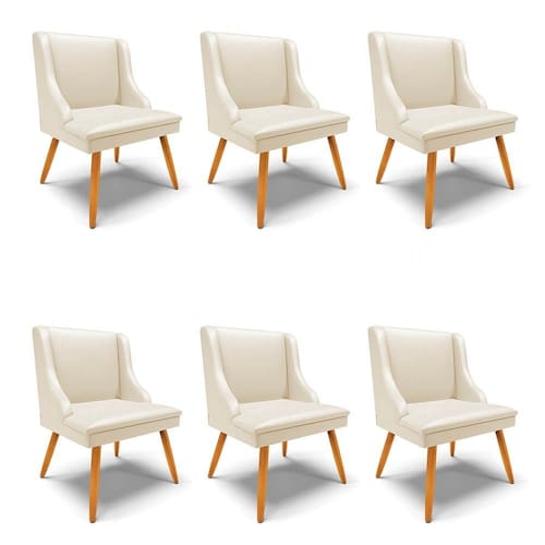 O Kit 6 Cadeiras Estofadas para Sala de Jantar Pés Palito Lia Sintético Bege, da Ibiza é lindo, confortável e combina com tudo! Vem conhecer os detalhes!